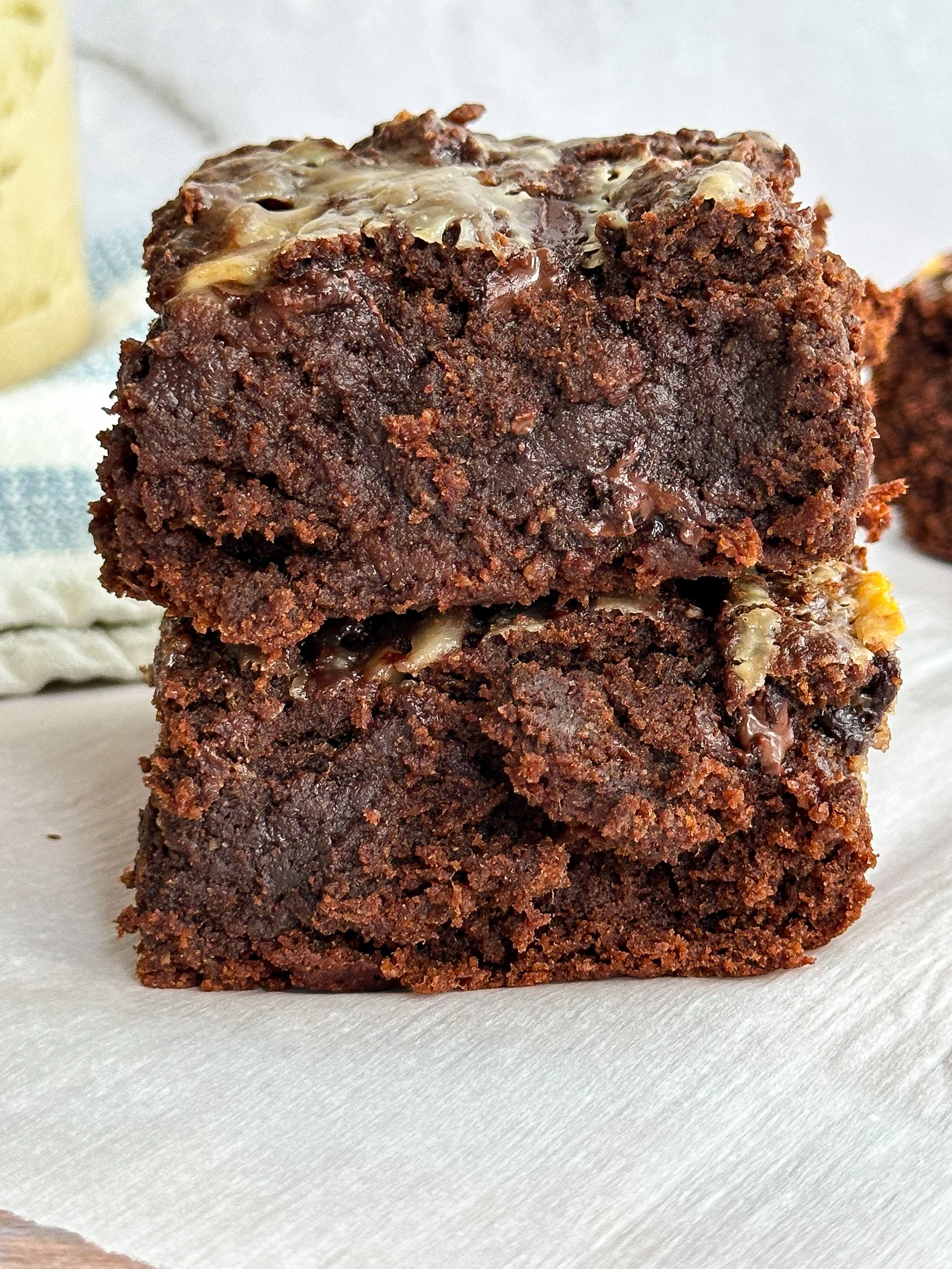 These are everything I love in a brownie — soft, fudgy, and full of chocolate flavor. But the best part? That creamy cheesecake swirl on top. It’s just coconut yogurt and a little maple syrup, but it bakes into this sweet, tangy layer that pairs so well with the chocolate base.