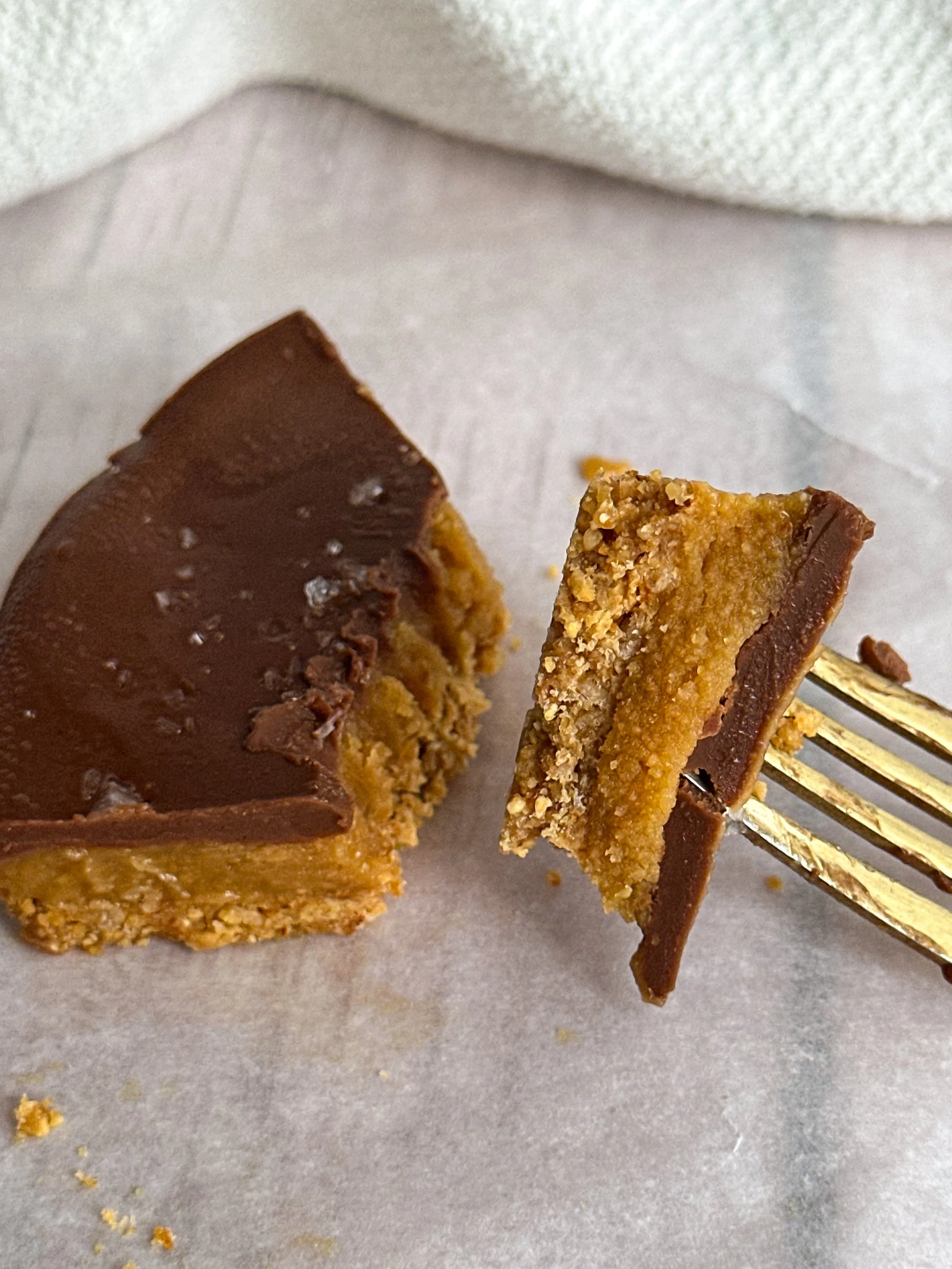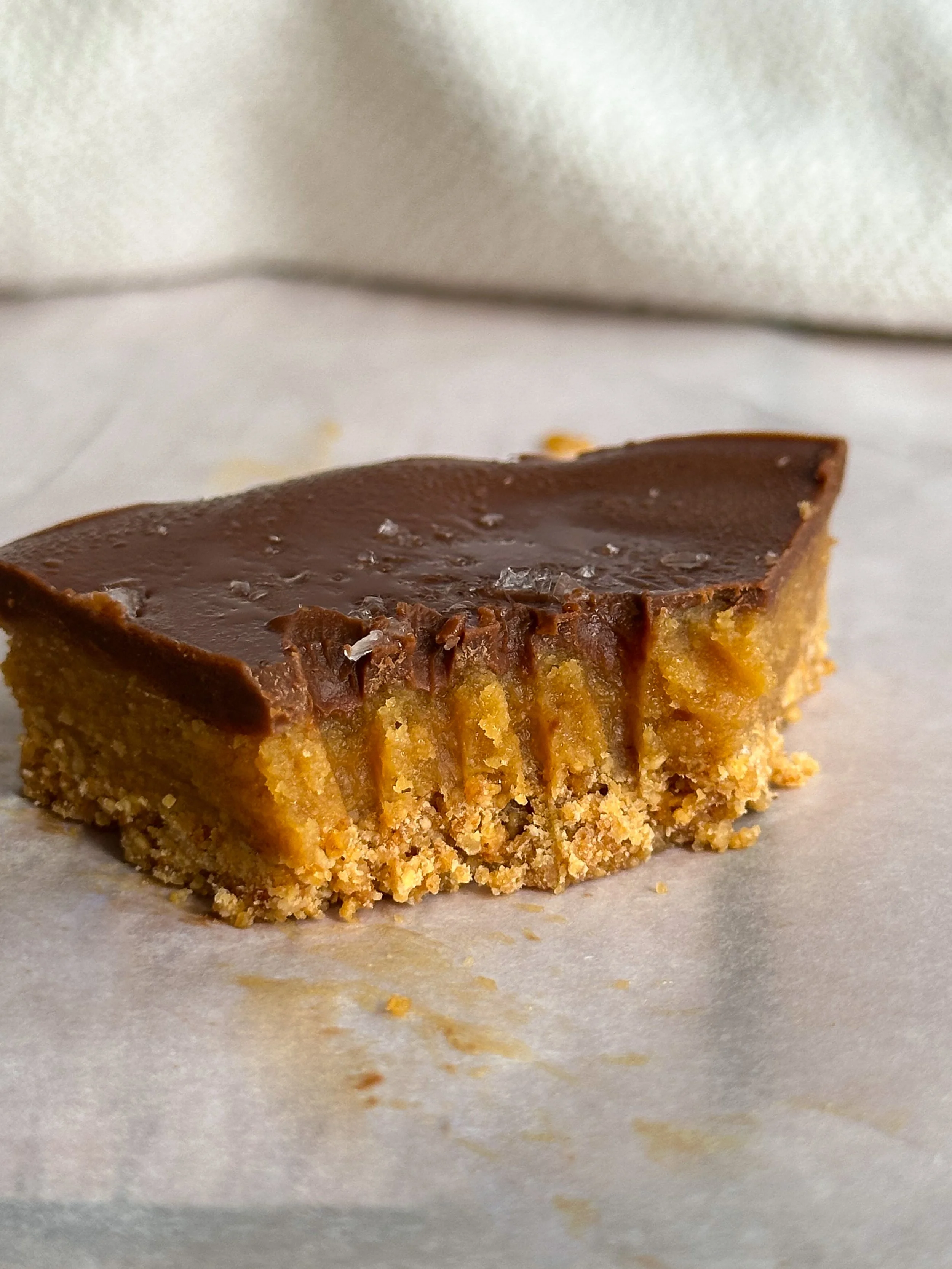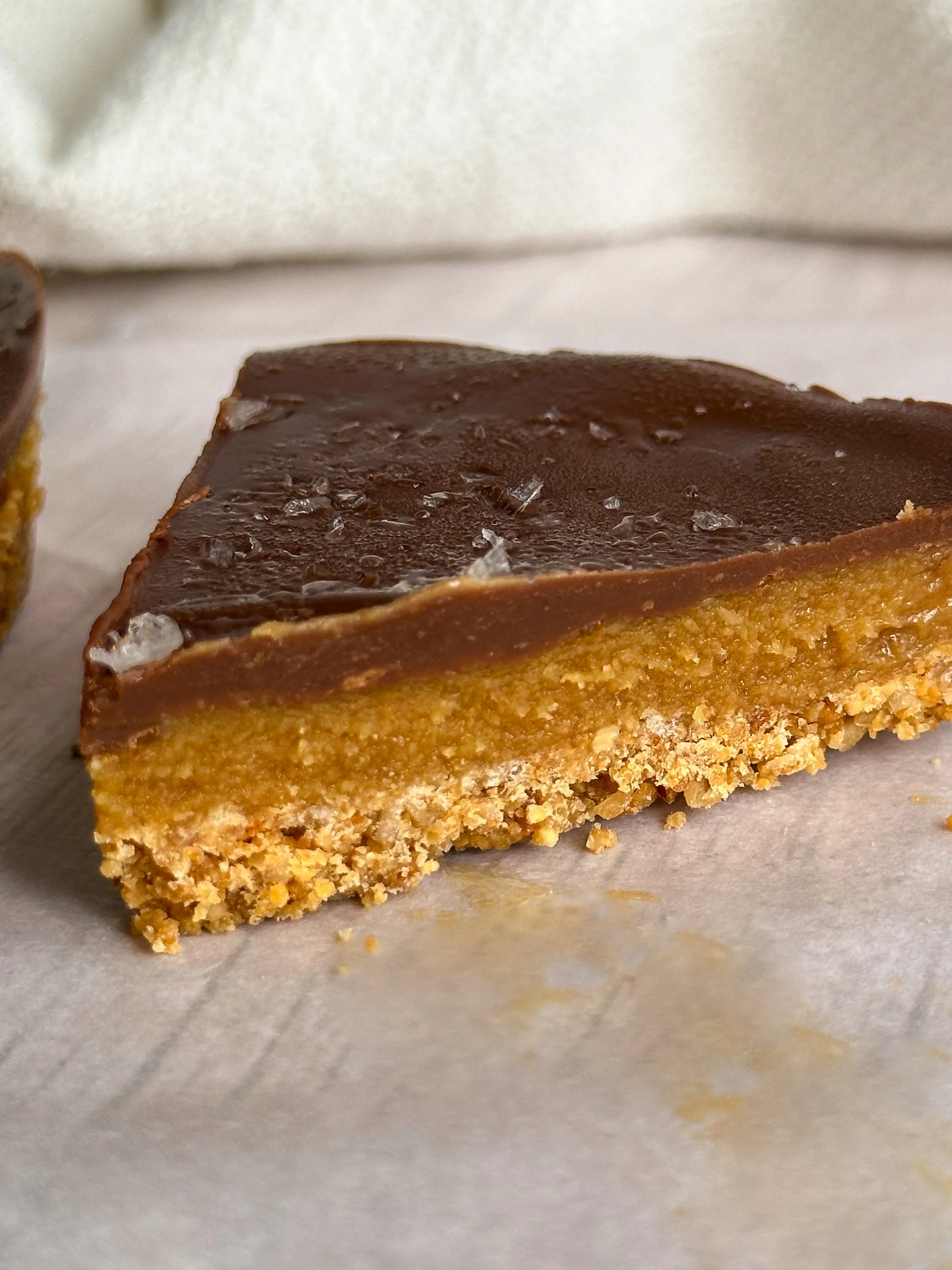 The base is made from the new Catalina Crunch Peanut Butter Protein Granola (Which is literally too good for words) for an extra crunch and blended with coconut oil to hold it all together. Then comes the creamy peanut butter caramel layer, literally liquid gold, sweetened with just a touch of maple syrup. Finally, everything gets topped with a silky chocolate peanut butter layer that sets beautifully once chilled.