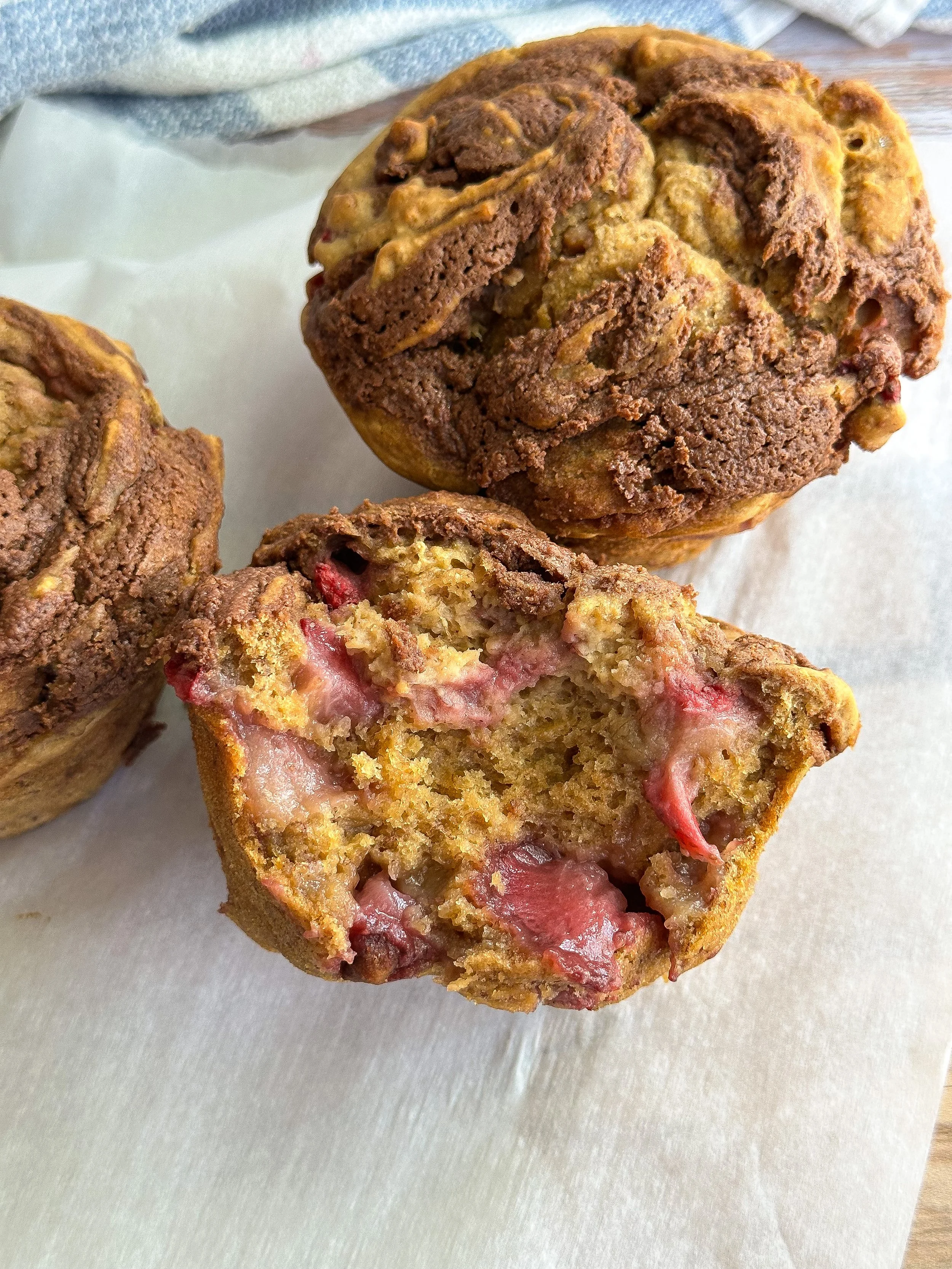 Strawberry Banana Nutella Muffins (Gluten Free, Vegan)