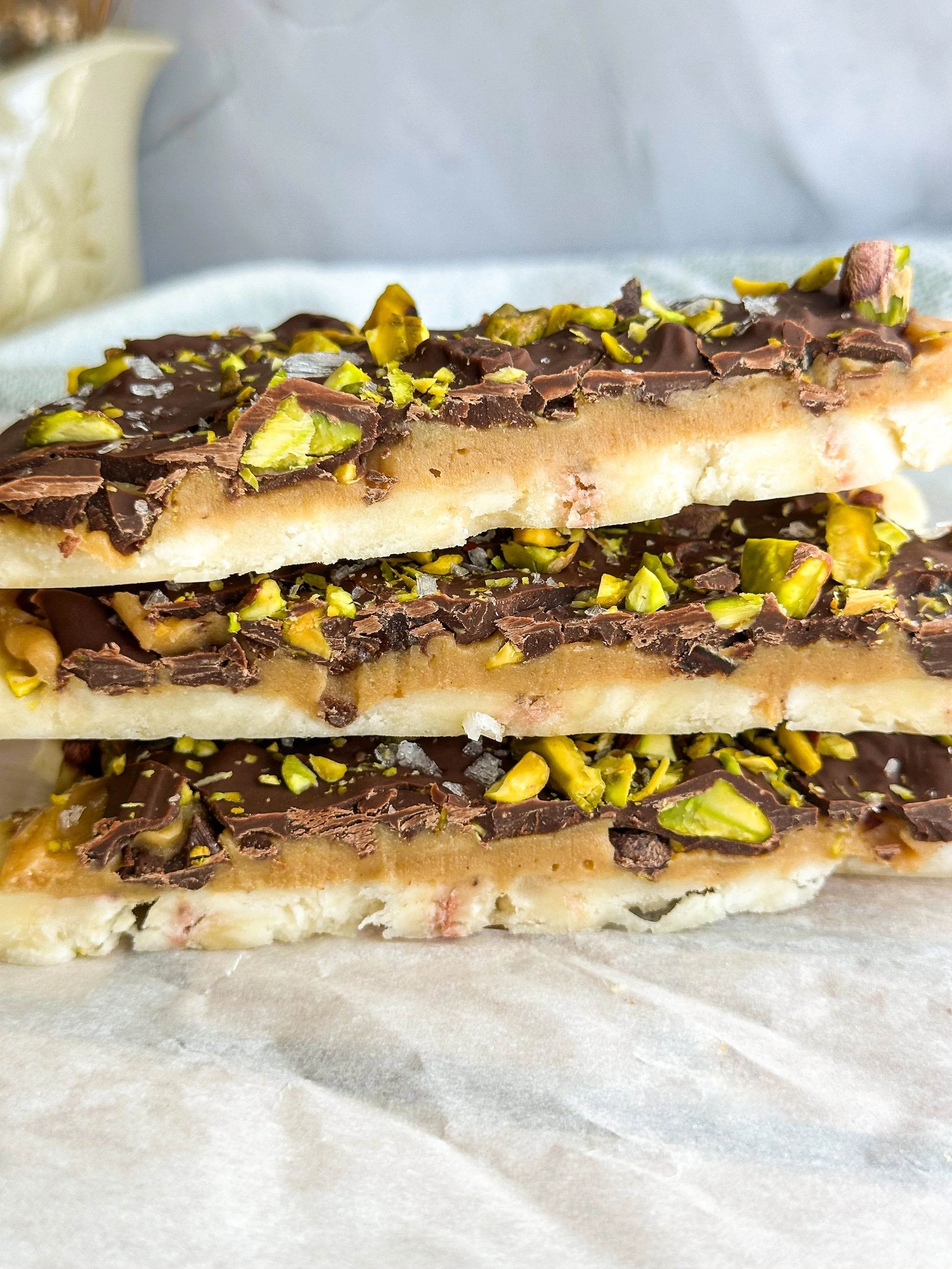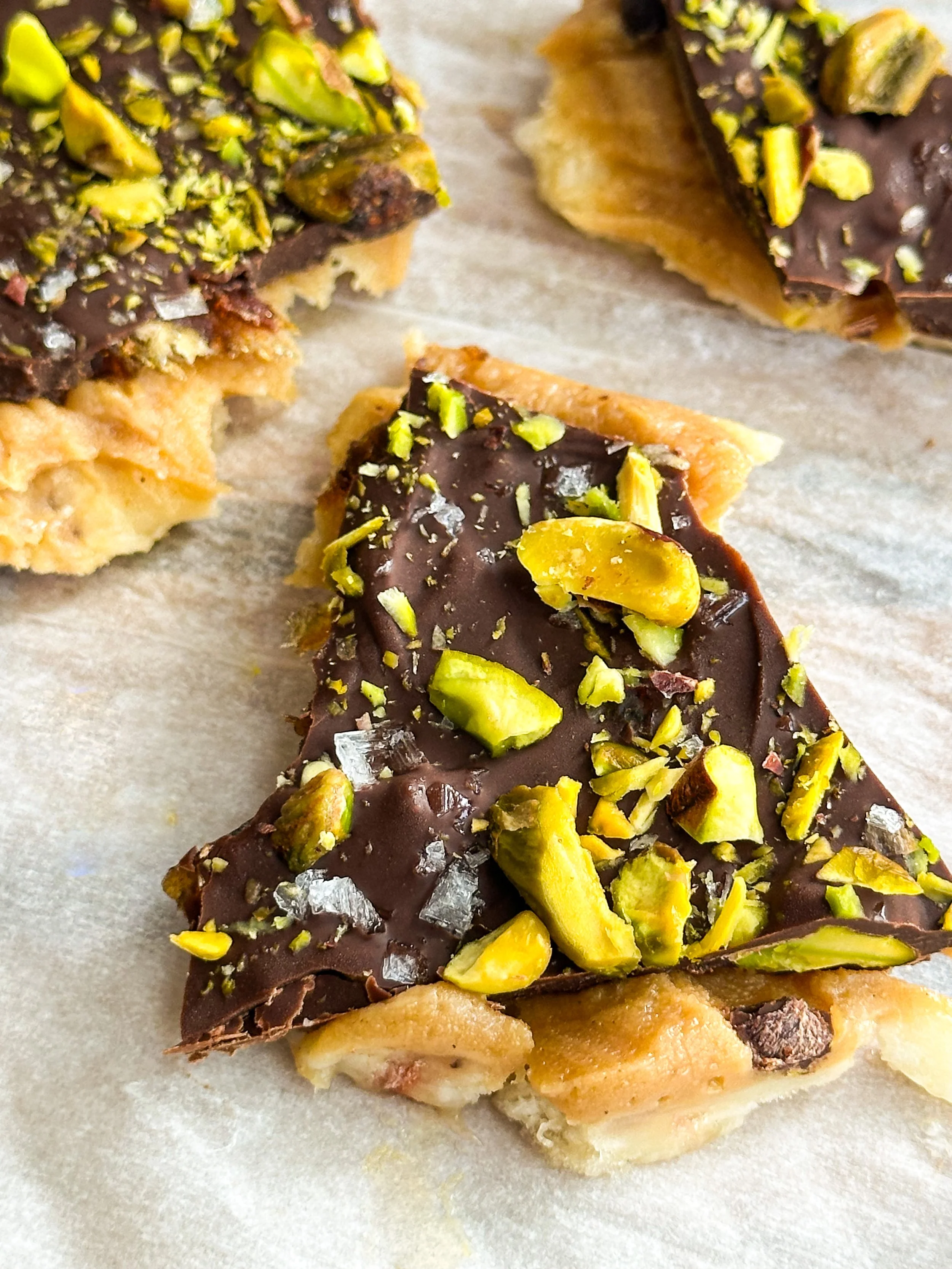 Sprinkle with remaining chopped pistachios and flaky sea salt.