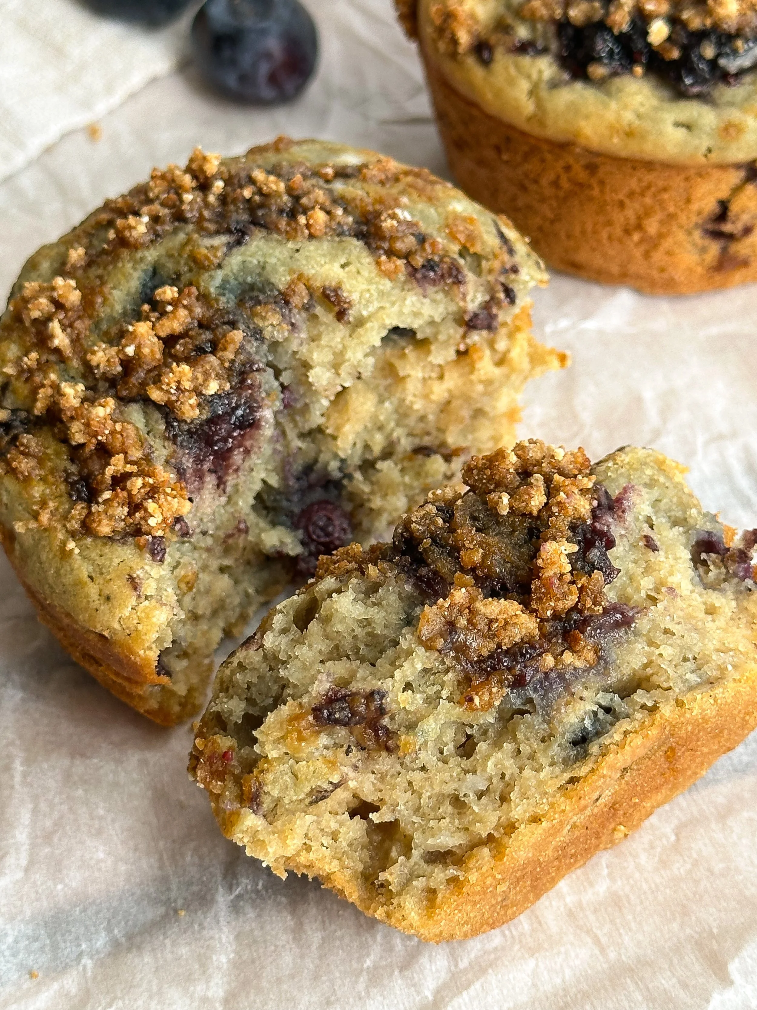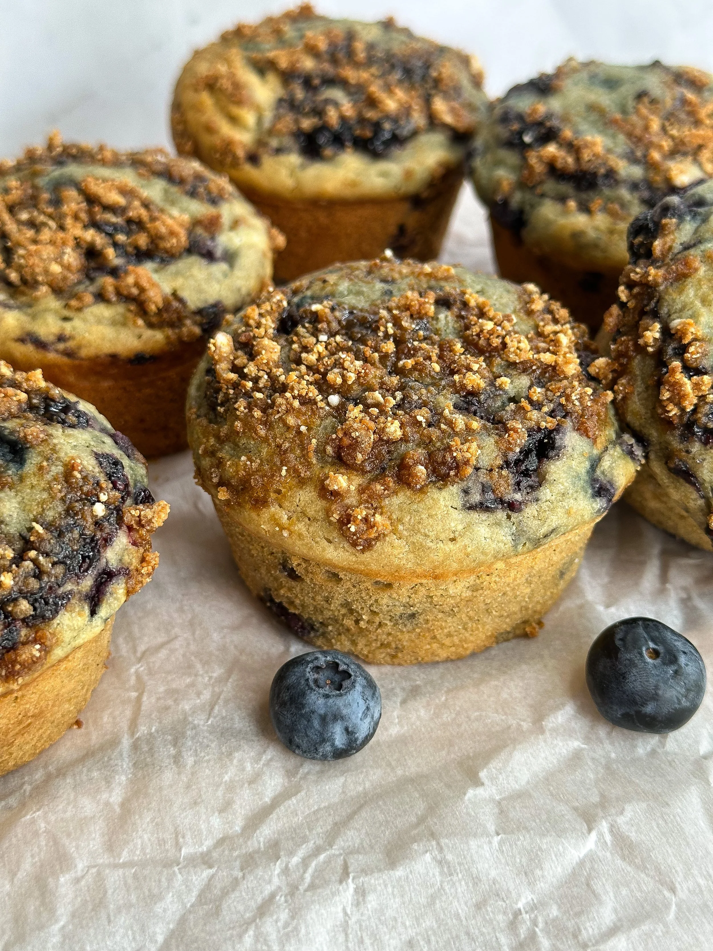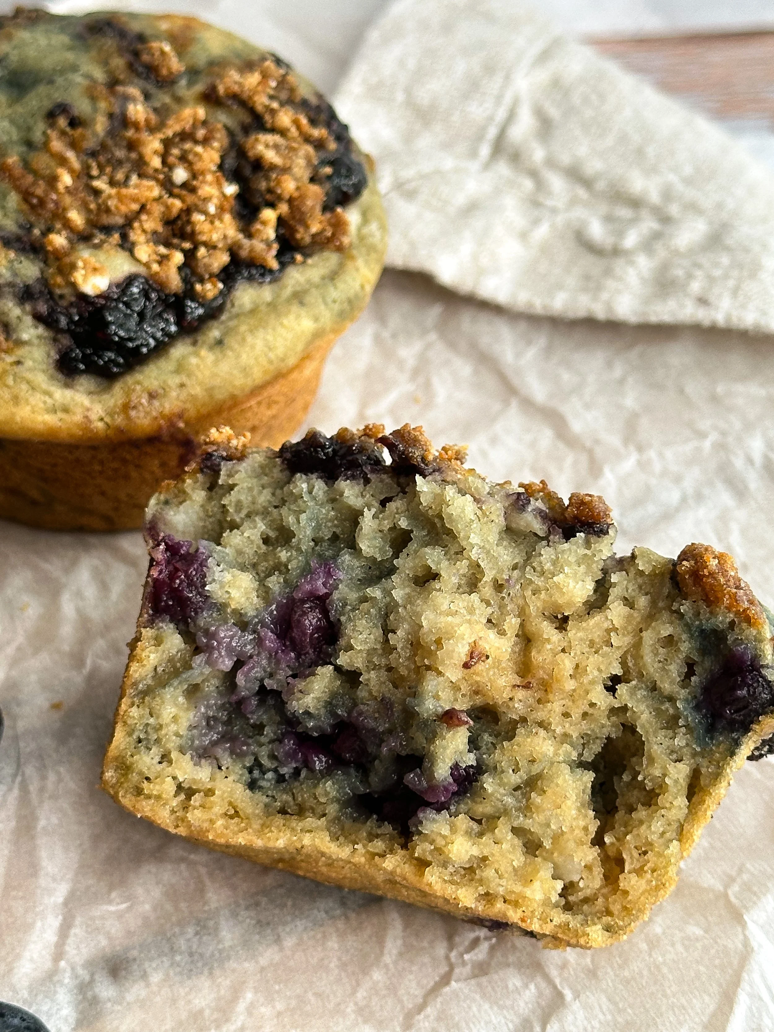 Vanilla Blueberry Crunch Muffins (Gluten Free, Dairy Free)